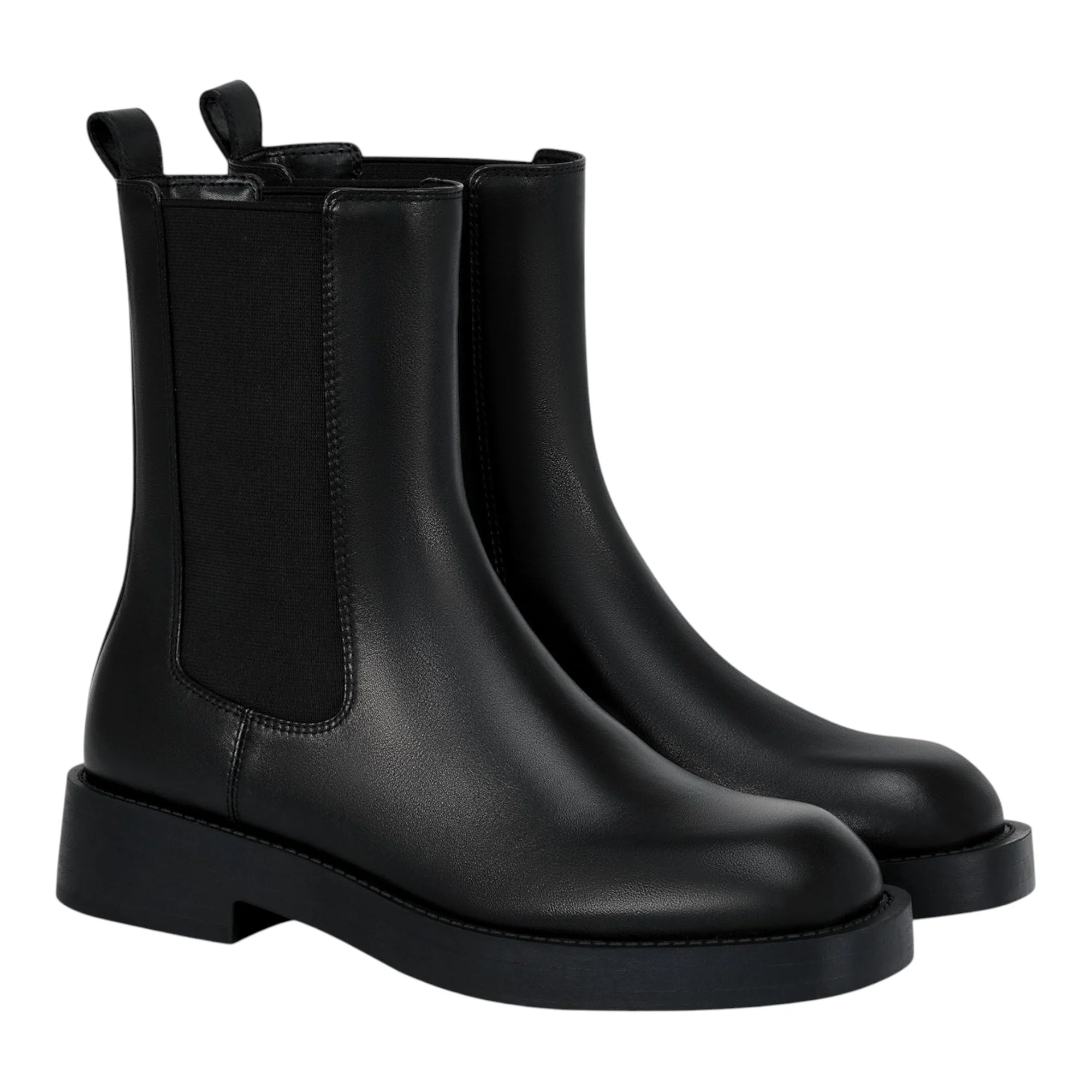 Натуральная кожа в сочетании с текстильными стрейч-вставками обеспечивает естественную посадку по ноге и легкость надевания через боковые резинки. Круглый мысок и отсутствие каблука делают обувь комфортной для длительной носки, а высота голенища 175 мм создает элегантный силуэт, не ограничивая движений.