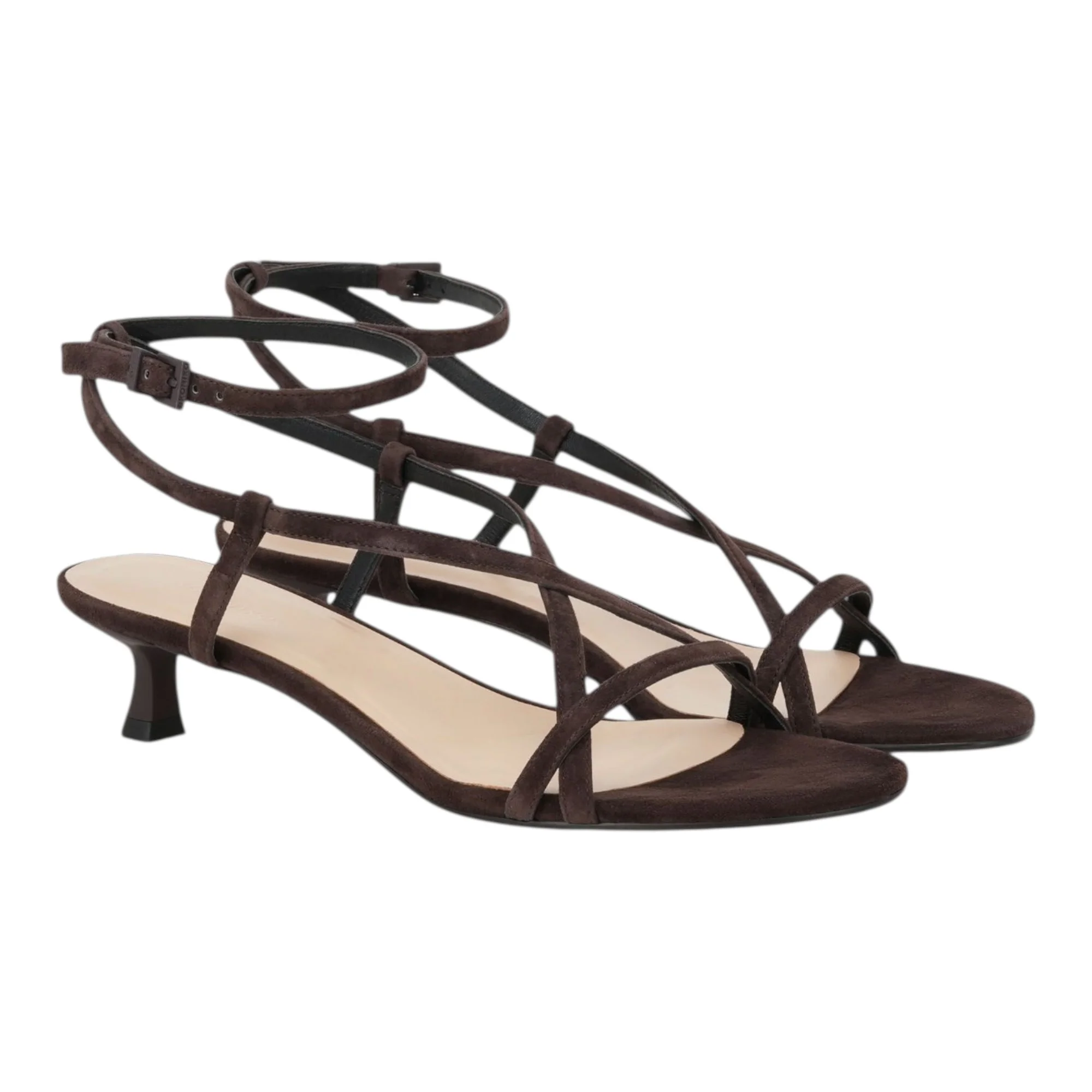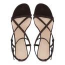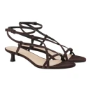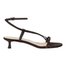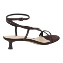 Натуральная велюровая кожа верха обеспечивает мягкость и воздухопроницаемость в жаркую погоду, а коричневый оттенок легко сочетается с базовым гардеробом. Открытый круглый мысок и конструкция с открытой пяткой создают ощущение легкости и свободы движений. Средний каблук-шпилька высотой до 9 см визуально удлиняет силуэт, сохраняя устойчивость при ходьбе.