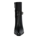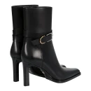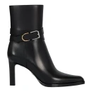Натуральная кожа верха обеспечивает долговечность и презентабельный внешний вид, а черный цвет делает ботильоны универсальными для любого гардероба. Стандартный высокий каблук выше 9 см визуально удлиняет силуэт, при этом высота подошвы 10 мм добавляет устойчивости при ходьбе. Удлиненный закрытый мысок создает элегантную линию стопы и подходит для офисных и вечерних образов.