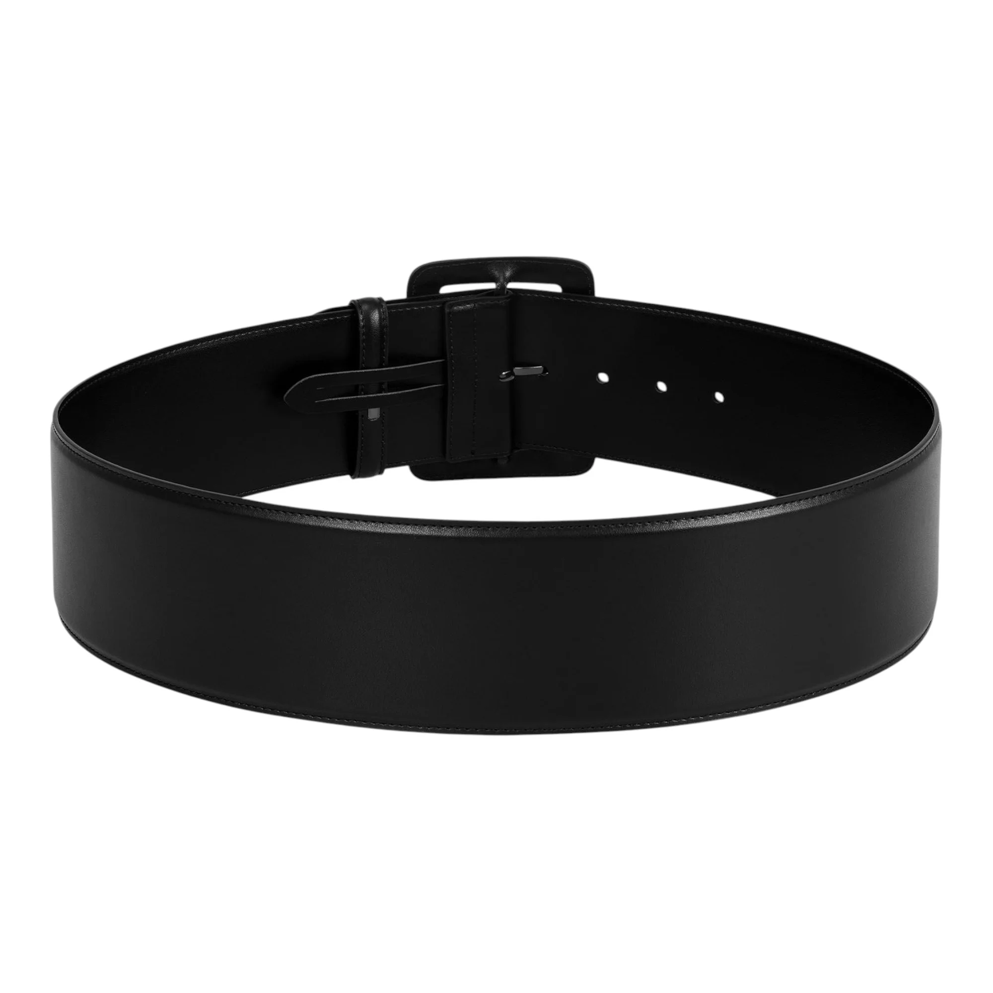 Натуральная кожа обеспечивает долговечность и сохранение формы даже при регулярном использовании. Материал приятен на ощупь и со временем приобретает индивидуальную патину, что делает аксессуар еще более выразительным. Черный цвет позволяет сочетать ремень с одеждой любых оттенков, от нейтральных до ярких акцентных.