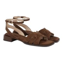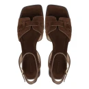 Верх из натурального велюра в коричневом цвете придает образу благородную текстуру и легко сочетается с летним гардеробом. Подкладка из натуральной кожи предотвращает натирание и обеспечивает воздухообмен даже в жаркую погоду. Женская модель дополнена кожаной стелькой, которая адаптируется к анатомии стопы и сохраняет форму после длительного ношения.