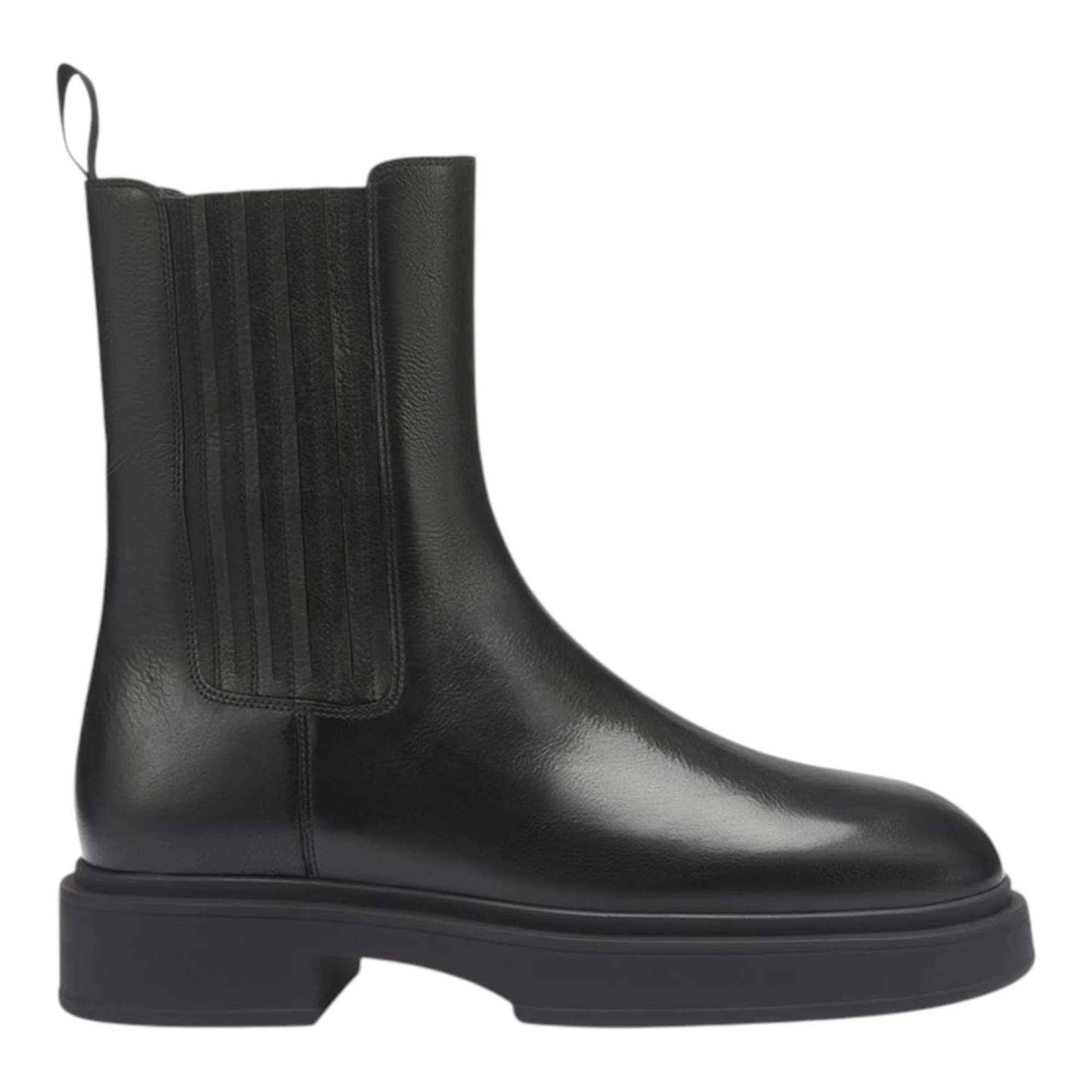 Натуральная кожа верха обеспечивает долговечность и элегантный внешний вид, а подкладка из натурального меха создает необходимое тепло в зимний сезон. Черный цвет делает обувь универсальной для любого гардероба. Отсутствие застежек упрощает процесс надевания, что особенно удобно в спешке городского ритма.