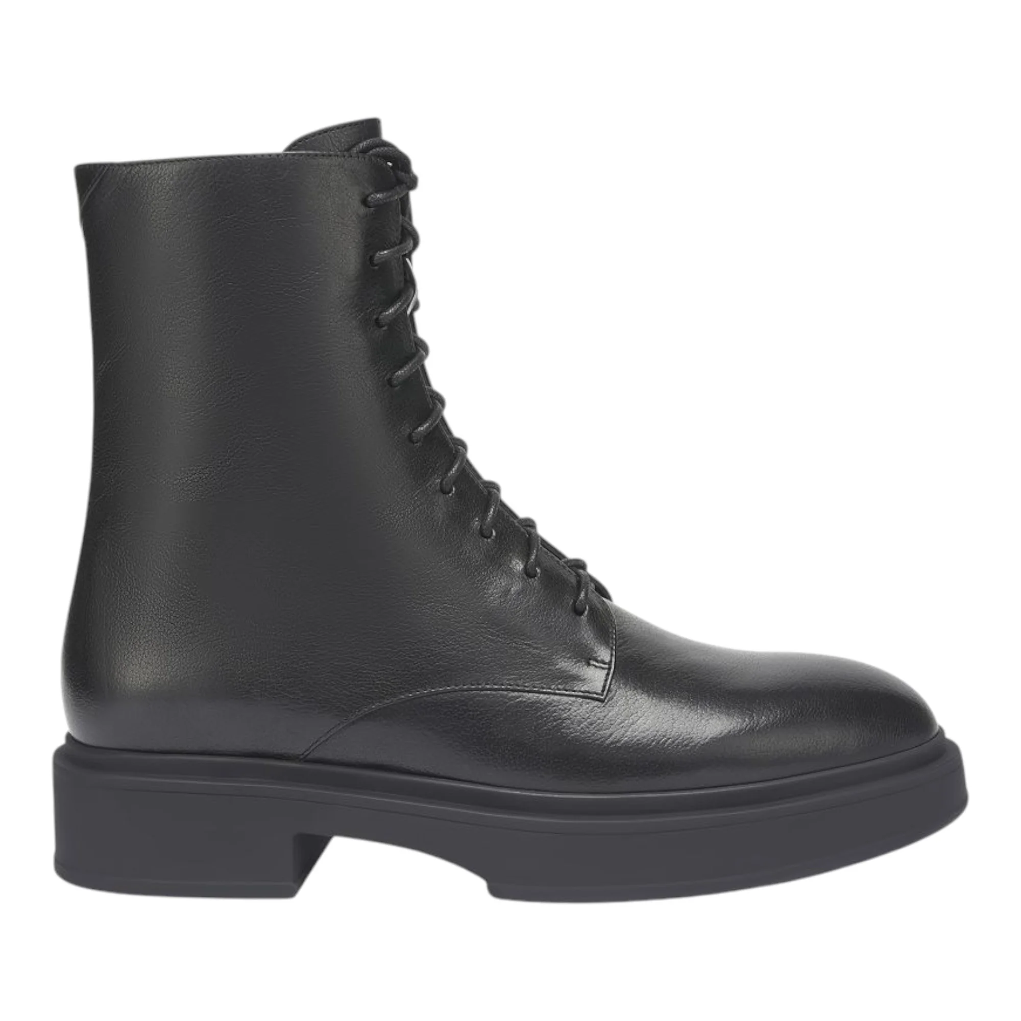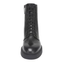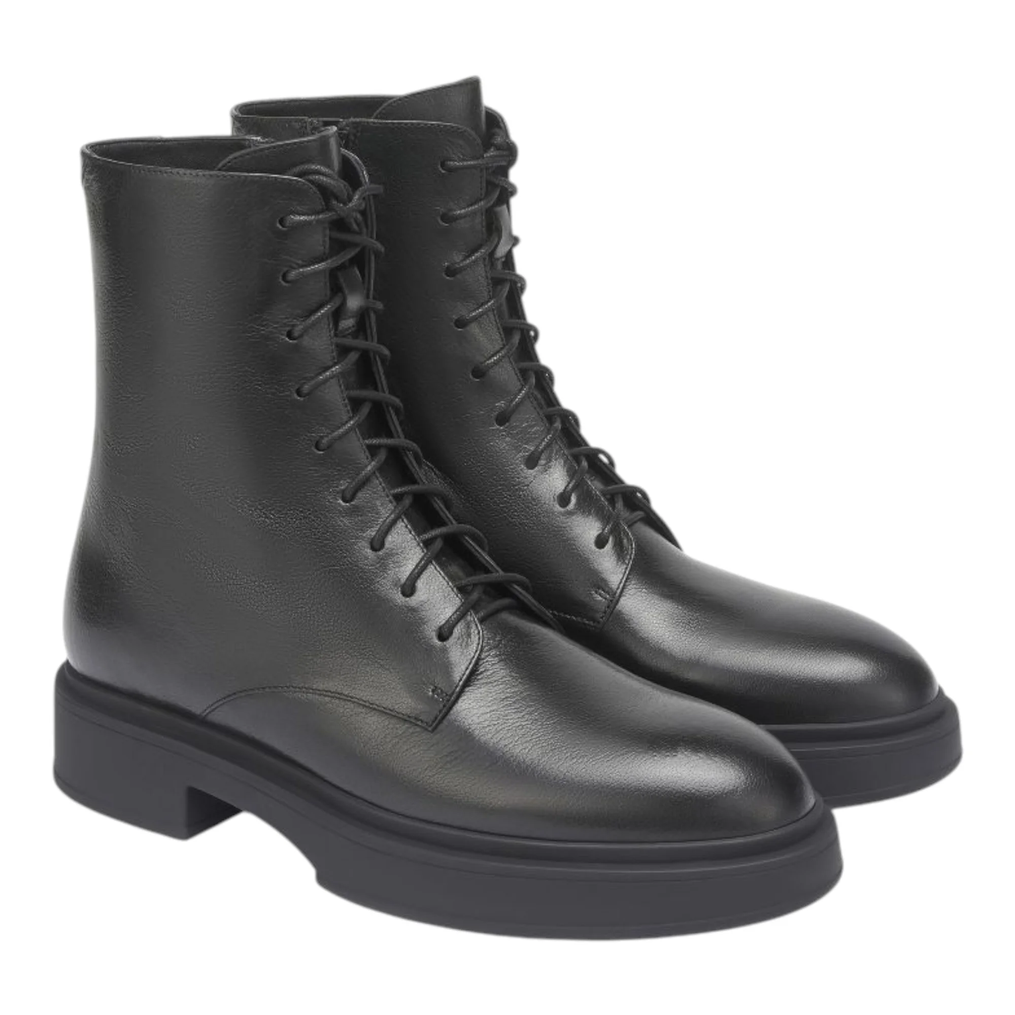 Натуральная кожа верха гарантирует долговечность и естественную терморегуляцию, а полушерстяная подкладка создает комфортный микроклимат в прохладную погоду. Резиновая подошва высотой 22 мм обеспечивает надежное сцепление с различными поверхностями. Черный цвет делает ботинки универсальными для любого гардероба.