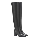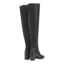 Боковая молния упрощает процесс надевания высоких ботфорт, а круглый мысок не сдавливает пальцы при длительной носке. Обхват голенища 26,5 см подходит для большинства типов фигуры, позволяя носить модель как с узкими джинсами, так и с платьями.