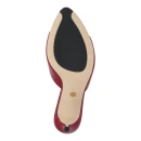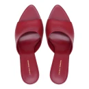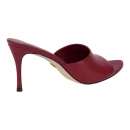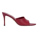 Натуральная кожа верха адаптируется к форме стопы и обеспечивает воздухообмен в жаркую погоду. Кожаная подкладка предотвращает натирание и поддерживает комфортный микроклимат. Открытый удлиненный мысок визуально вытягивает стопу, а красный цвет становится ярким акцентом образа.