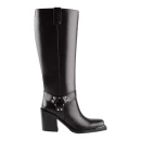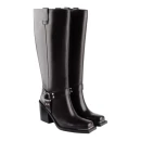 Высота голенища 377 мм позволяет носить сапоги с брюками и юбками средней длины, а молния упрощает процесс обувания. Квадратный мысок соответствует актуальным трендам и визуально удлиняет стопу. Обхват голенища 317 мм подходит для ног стандартной полноты.