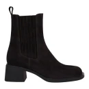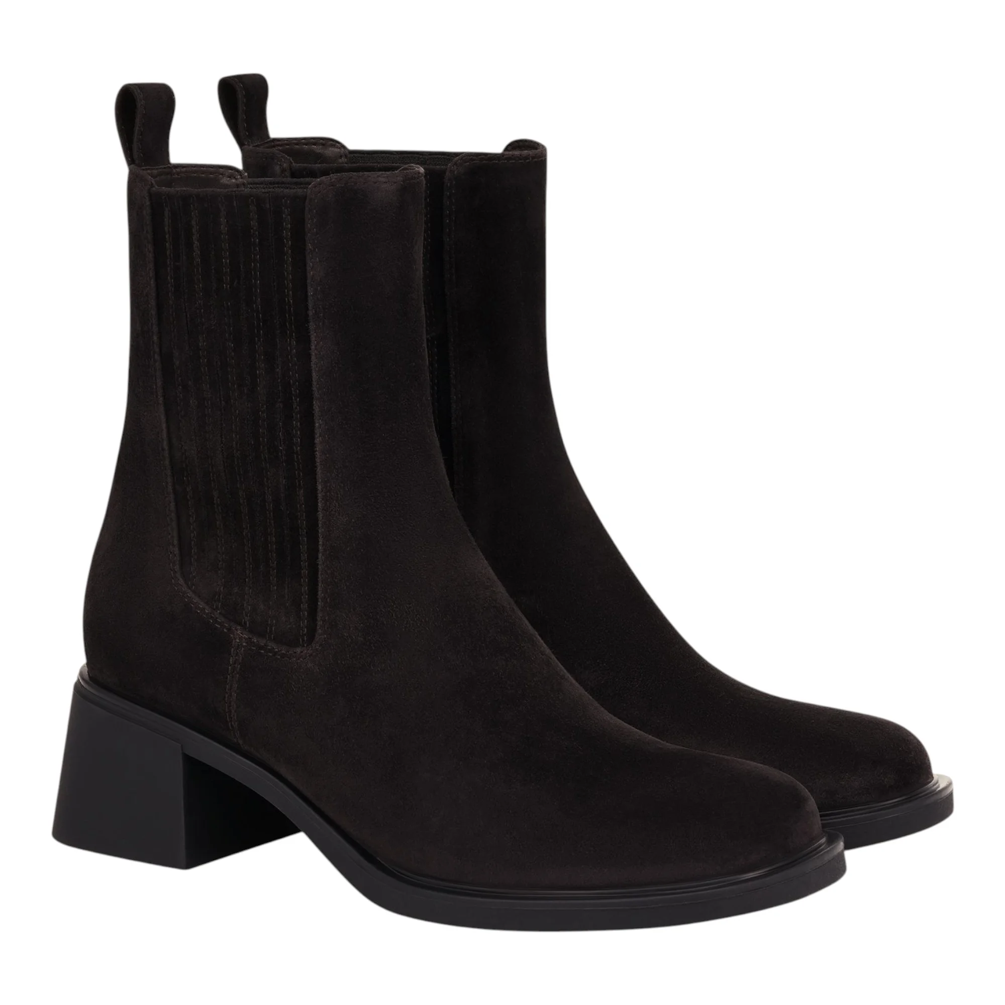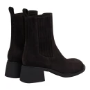 Натуральная кожа велюр в сочетании с текстильными стрейч-вставками обеспечивает гибкость и адаптацию к форме ноги. Коричневый оттенок легко сочетается с зимним гардеробом, а квадратный мысок визуально удлиняет стопу. Каблук-столбик средней высоты добавляет женственности, сохраняя устойчивость при ходьбе по зимним дорогам.