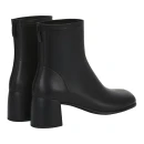 Каблук-столбик средней высоты до 9 см придает силуэту изящество, сохраняя устойчивость при ходьбе. Высота голенища 146 мм визуально удлиняет ногу, а обхват 243 мм подходит для большинства типов голени. Круглый закрытый мысок универсален для различных стилей одежды. Черный цвет легко сочетается с гардеробом любой цветовой гаммы.