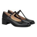Натуральная кожа верха обеспечивает долговечность и естественную терморегуляцию в демисезонный период, а кожаная подкладка создает комфортный микроклимат для стопы. Черный цвет делает туфли универсальными для любого гардероба. Закрытый круглый мысок защищает пальцы и визуально удлиняет стопу, а каблук-столбик стандартной средней высоты до 9 см придает силуэту женственность, сохраняя устойчивость при ходьбе.
