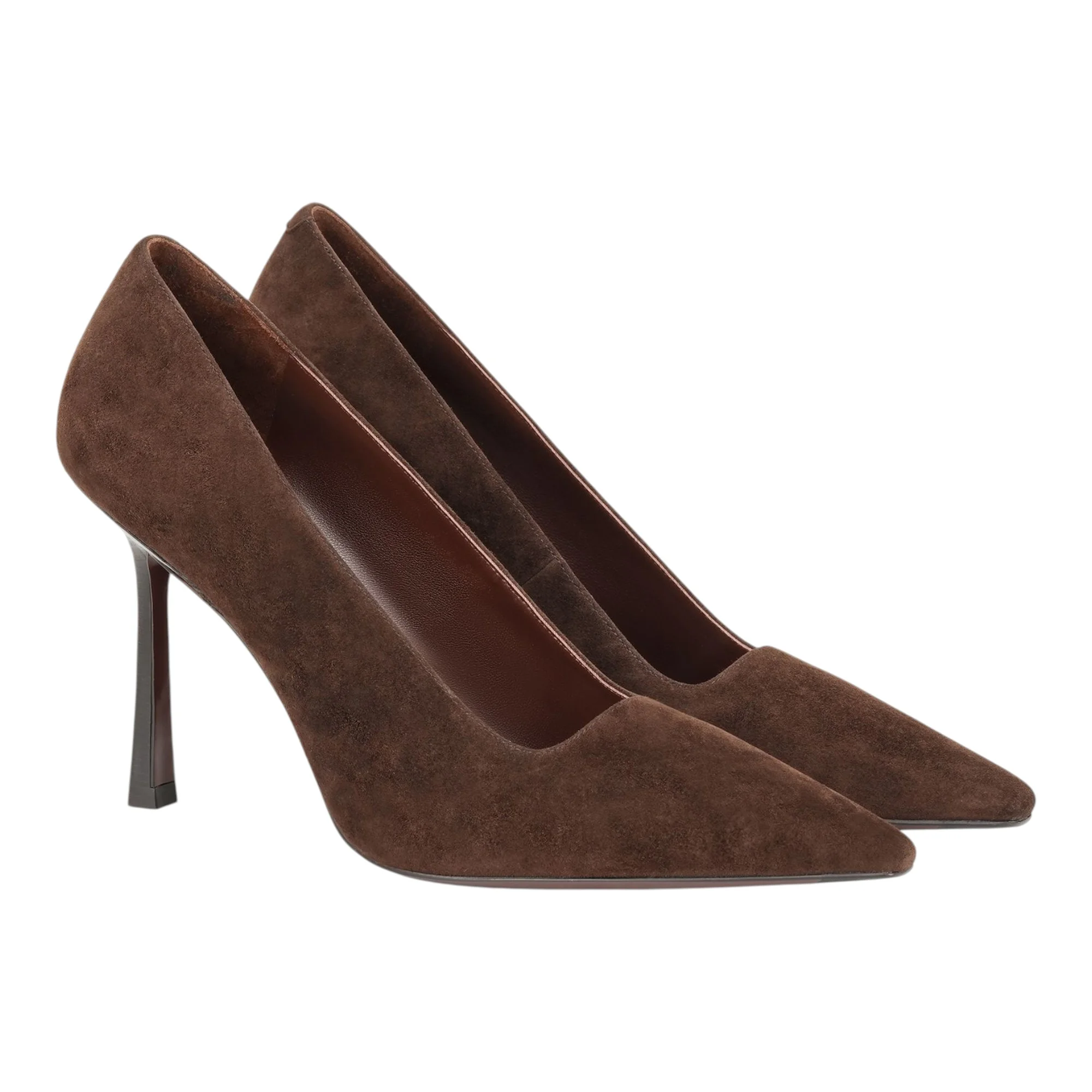 Высота каблука свыше 9 см визуально удлиняет силуэт и придает походке уверенность, при этом устойчивая конструкция шпильки обеспечивает комфорт при длительном ношении. Удлиненный закрытый мысок создает изящную линию стопы и подходит к брюкам любого кроя, юбкам и платьям. Отсутствие застежки упрощает процесс надевания и создает лаконичный силуэт без лишних деталей.
