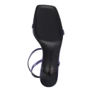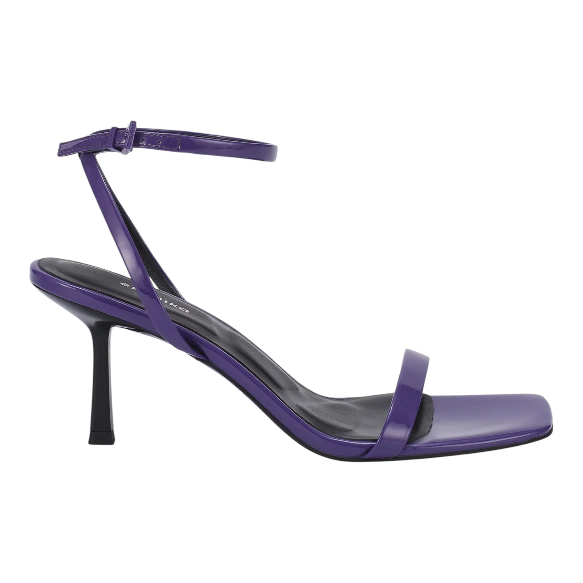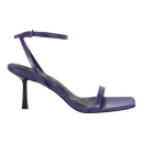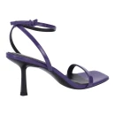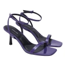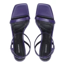 Натуральная лакированная кожа верха придает босоножкам изысканный блеск и легко очищается от пыли, что особенно важно в летний сезон. Фиолетовый цвет добавляет образу яркости и индивидуальности. Стандартный средний каблук-шпилька высотой до 9 см визуально удлиняет силуэт, при этом подошва высотой 2 см обеспечивает дополнительную устойчивость при ходьбе.