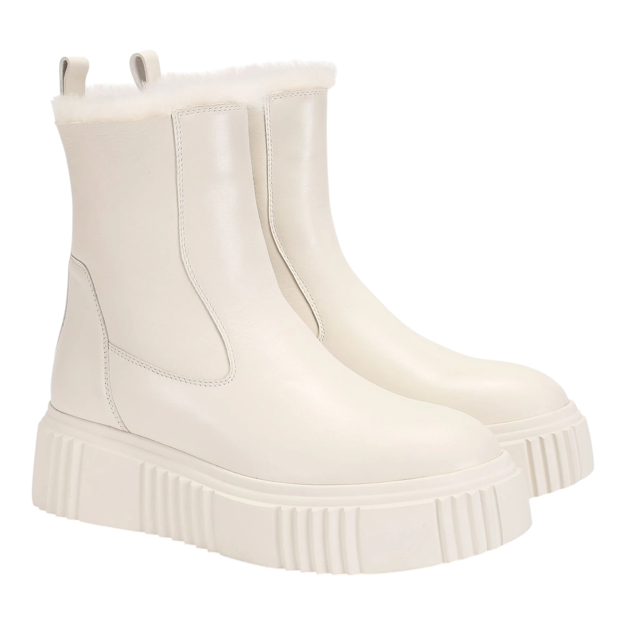 Натуральная кожа верха гарантирует долговечность и защиту от влаги, а натуральный мех в подкладке и стельке создает теплый микроклимат даже в морозную погоду. Резиновая подошва высотой 42 мм обеспечивает надежное сцепление с зимними поверхностями и дополнительную амортизацию при ходьбе. Удобная молния позволяет быстро обуваться и снимать ботинки, что особенно ценно в холодное время года.