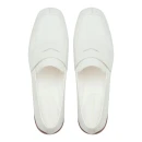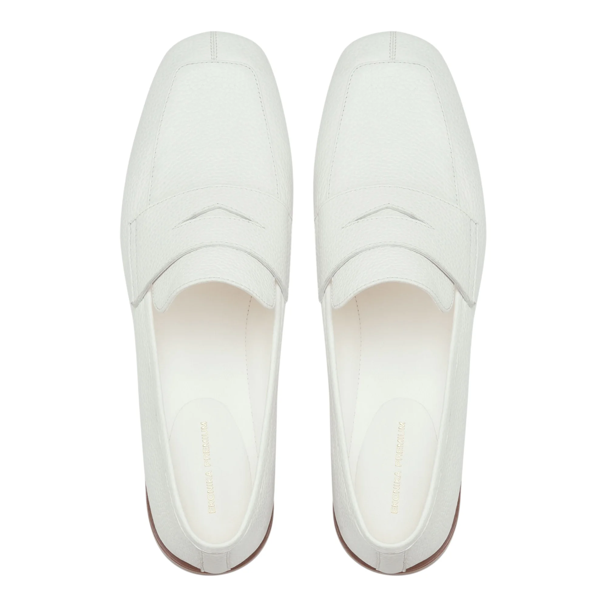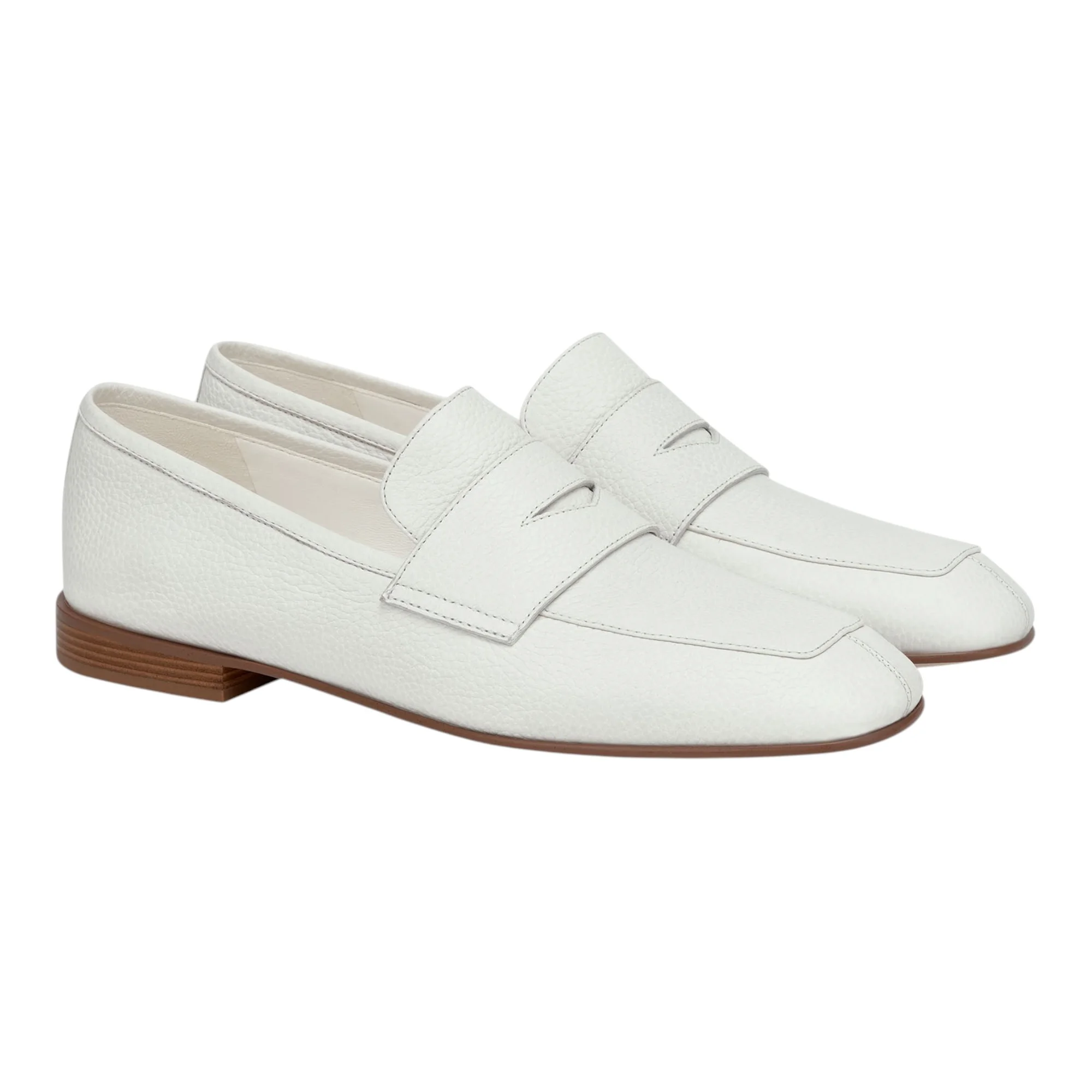 Белый цвет делает лоферы актуальными для летнего сезона и легко сочетается с различными образами. Квадратный мысок придает силуэту современный характер, а низкий каблук до 4 см создает устойчивость при длительной ходьбе. Подошва высотой 3,5 см из тунита и резины обеспечивает хорошее сцепление с поверхностью и амортизацию.